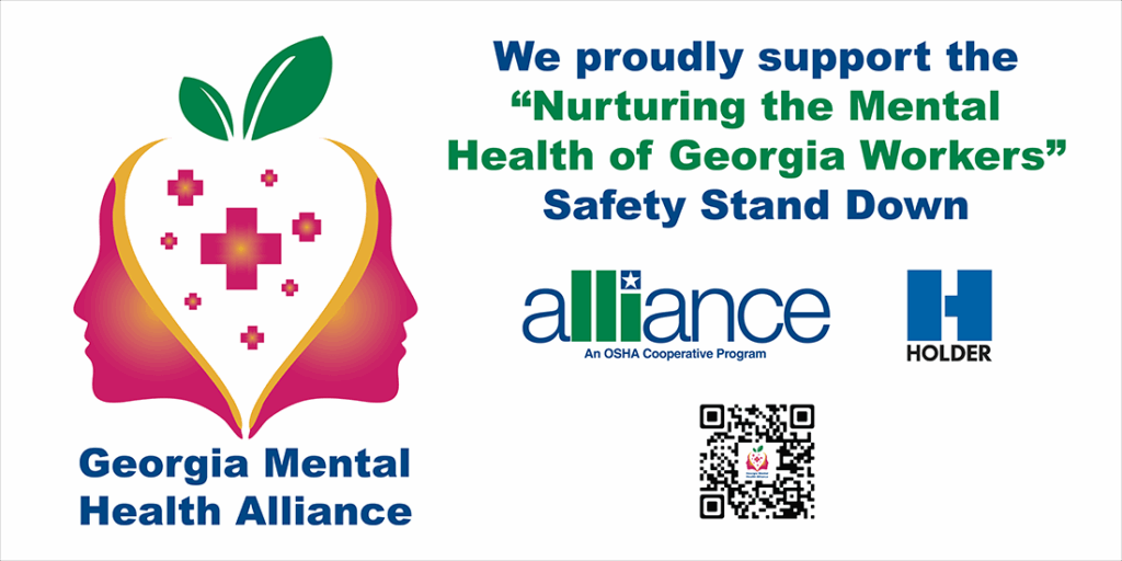 The Georgia Mental Health Alliance proudly presents information for all industries to use during May 2025, which is Mental Health Awareness Month. Employers across the state are invited to join the “Nurture the Mental Health of Georgia Workers” Safey Stand Down anytime during the month of May by stopping all work for a safety meeting focused on the importance of workers caring for their mental health and supporting co-workers’ well-being. Below are tools from various sources that you can use to prepare a Safety Stand Down for your workplace or to use privately as needed. To learn more about the Georgia Mental Health Alliance, including its vision and mission statement, click here.